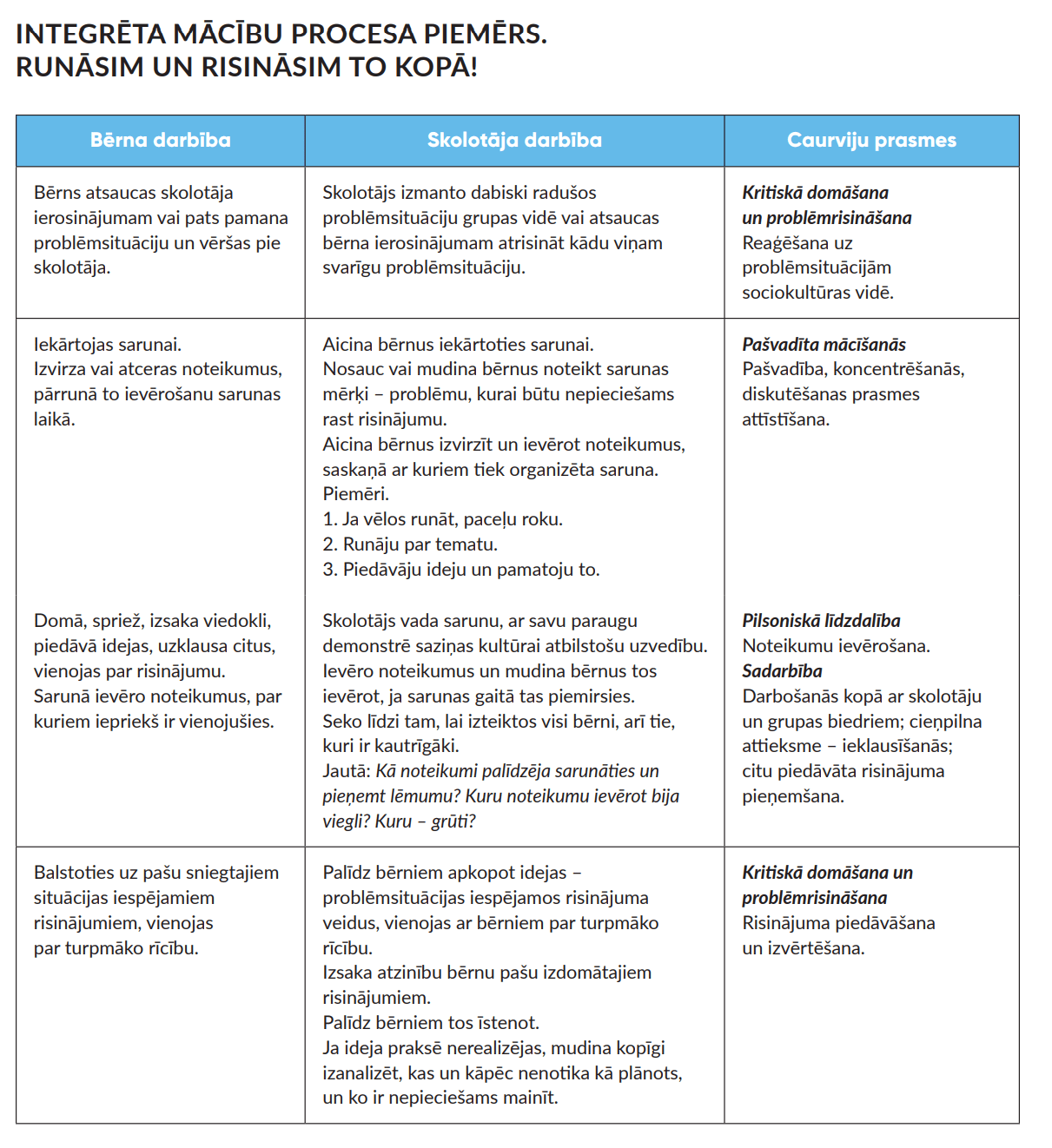 Runāsim un risināsim to kopā!, mācību procesa piemērs