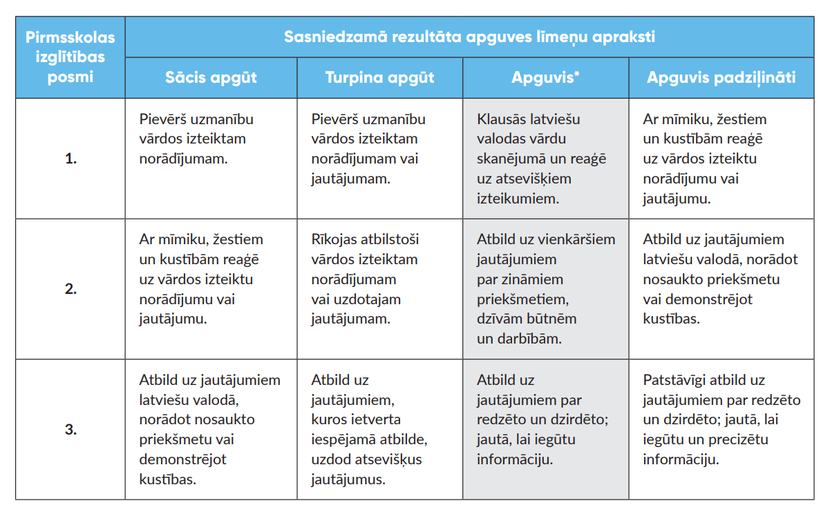 Sasniedzamā rezultāta apguves līmeņi