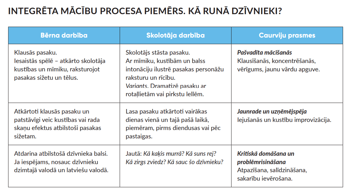 Kā runā dzīvnieki?, mācību procesa piemērs