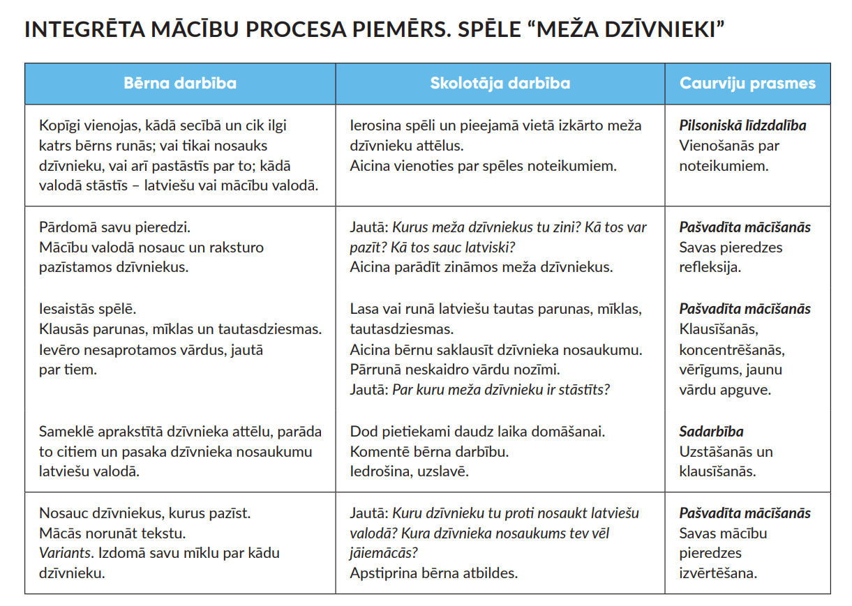 Spēle “Meža dzīvnieki”,mācību procesa piemērs
