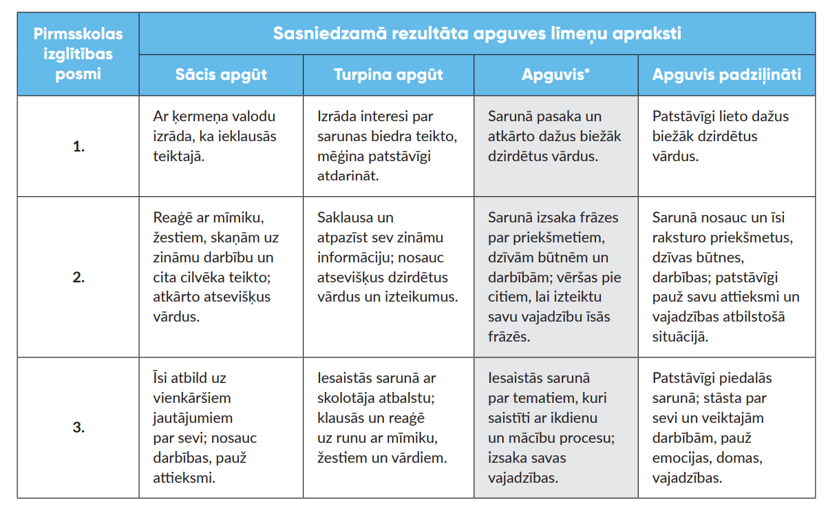 Sasniedzamā rezultāta apguves līmeņi