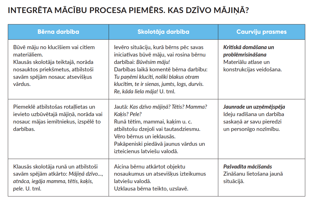 Kas dzīvo mājiņā?, mācību procesa piemērs