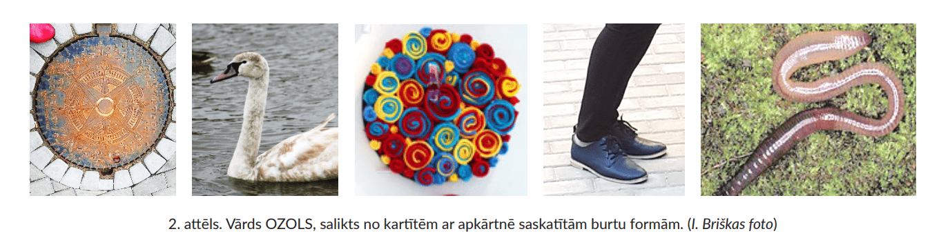 detaļās. Skolotājs vai kāds no bērniem nofotografē objektu, pagriež fotogrāfiju tā, lai ir skaidri saskatāma burta forma, izdrukā