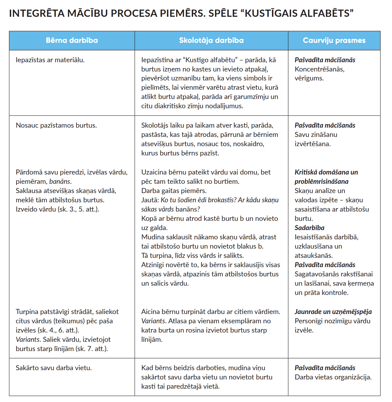 Spēle “Kustīgais alfabēts”, mācību procesa piemērs