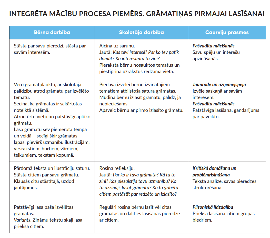Grāmatiņas pirmajai lasīšanai, mācību procesa piemērs