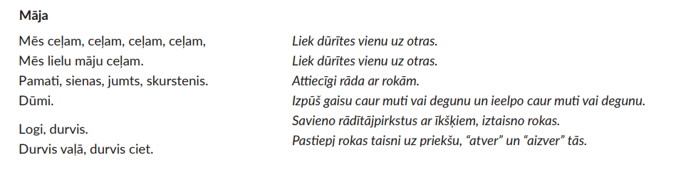 bērniem celt arī mazu māju, dūrīšu vietā izmantojot rādītājpirkstus.