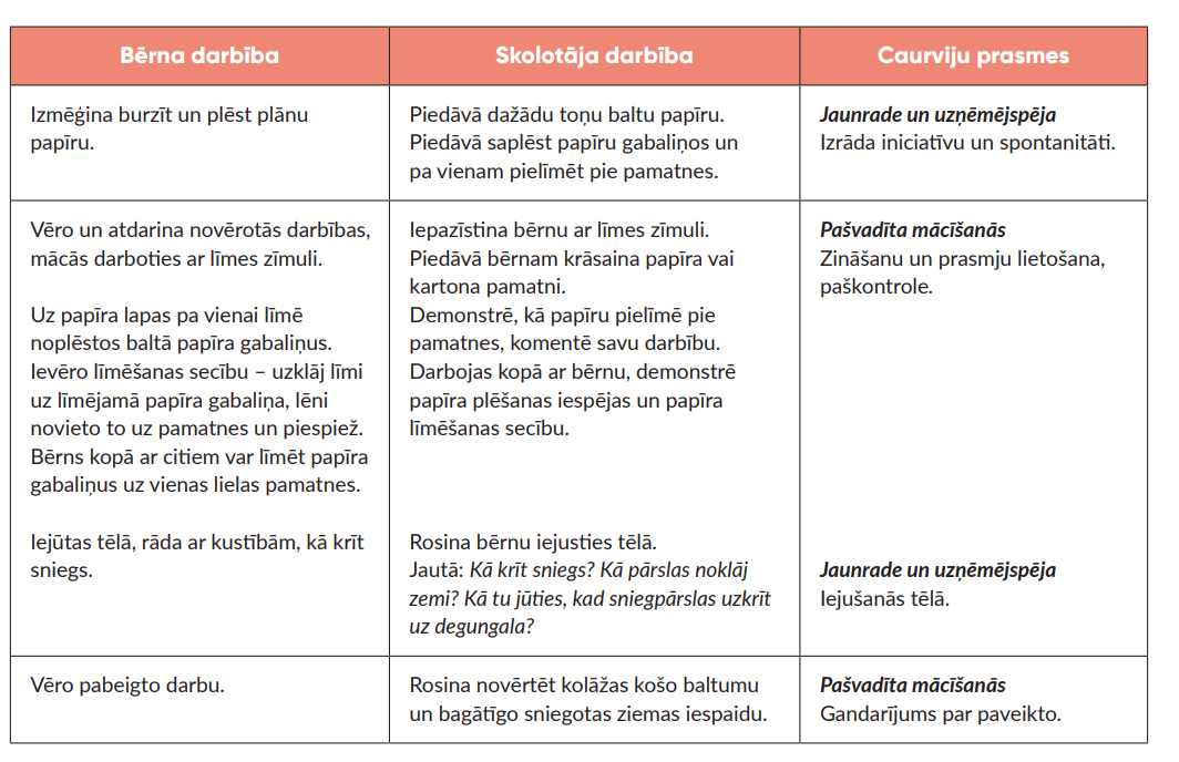 Krīt visbaltākais sniegs, mācību procesa piemērs