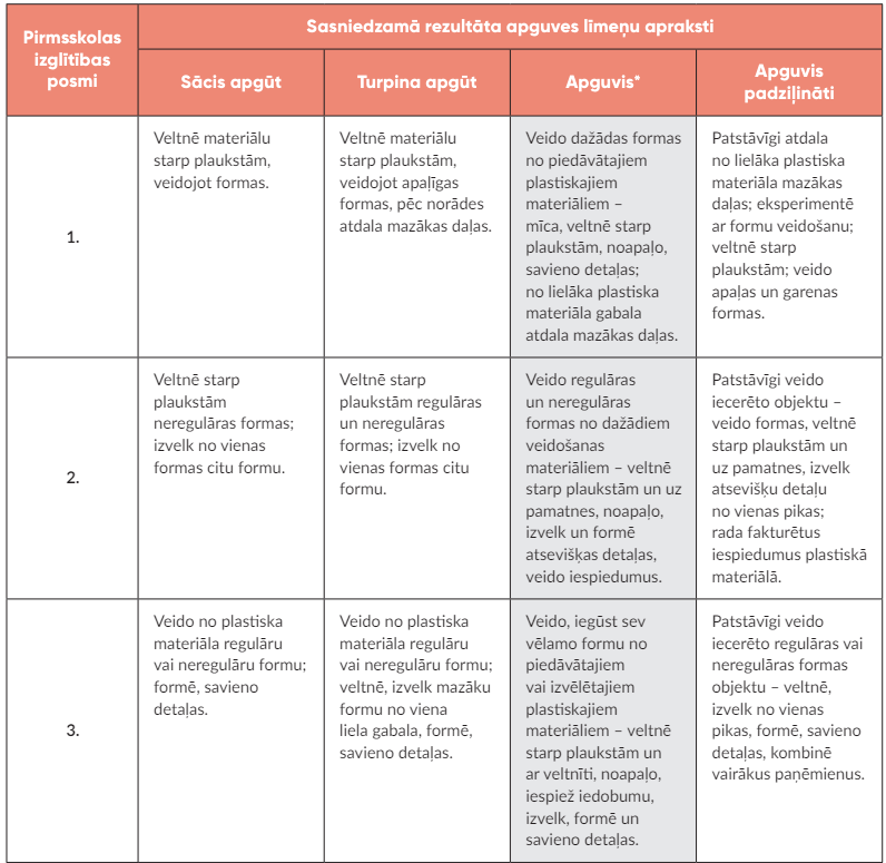 Sasniedzamā rezultāta apguves līmeņi