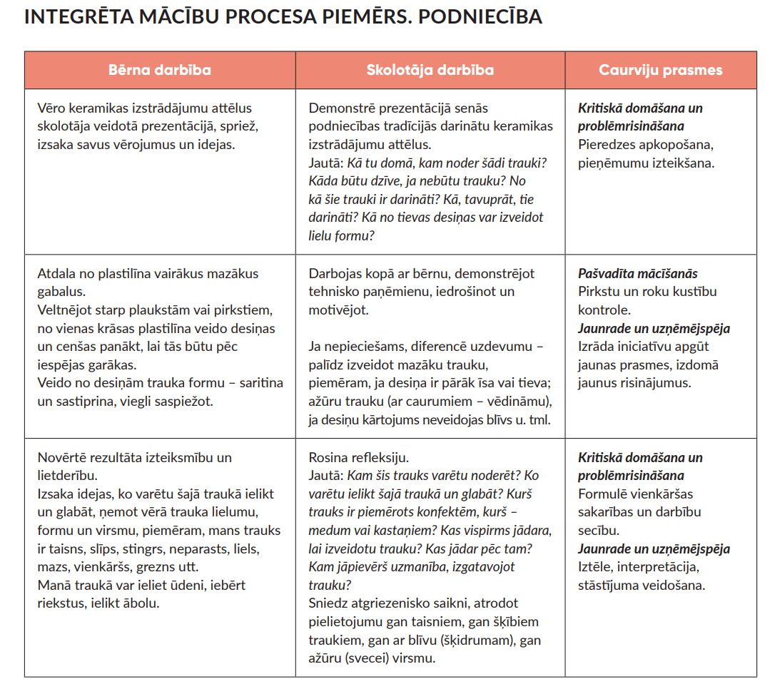 Integrēta mācību procesa piemērs, podniecība